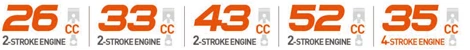 | Desplazamiento | 25.4cc | 32.6cc | 42.7cc | 52cc | 35cc |